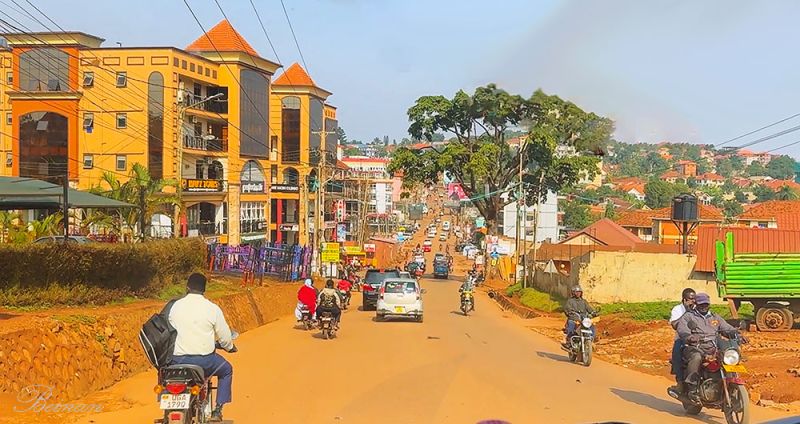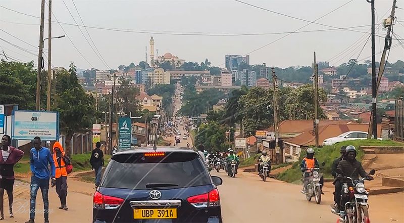 进入坎帕拉市,路面也不见宽。两边有了一些楼房,但摩托车更多了。