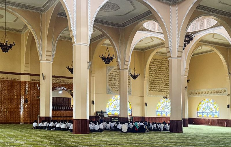 在清真寺里看到很多学生盘腿坐在地毯上听课。在这里,清真寺不仅是宗教空间,也是教育空间和社区公共空间。