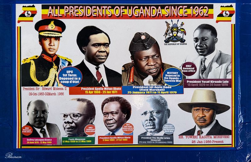 博物馆里有一幅自1962年乌干达独立以来历届总统的照片。上排右二就是阿明。