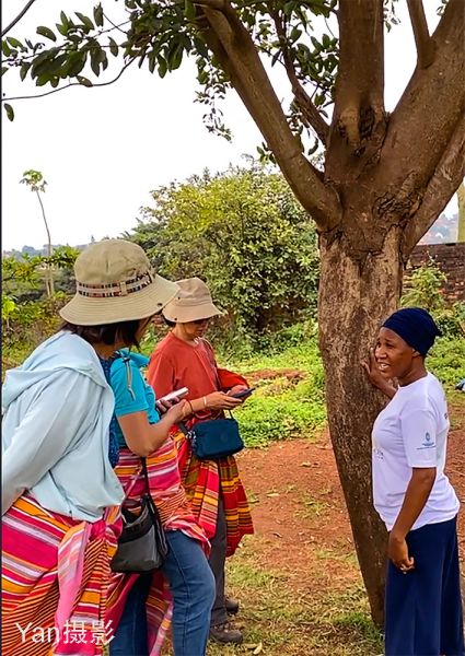 导游大概也觉得这些历史遗迹太压抑了,马上笑着把我们带到一棵大树旁。她告诉我们,这是纳塔尔无花果树(Natal fig),也叫穆图巴树(Mutuba tree)。这种树的神奇之处就是它可以持续生产树皮布(Bark cloth)。