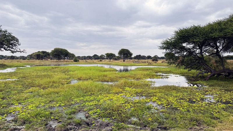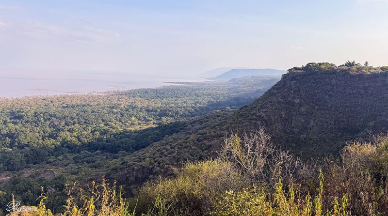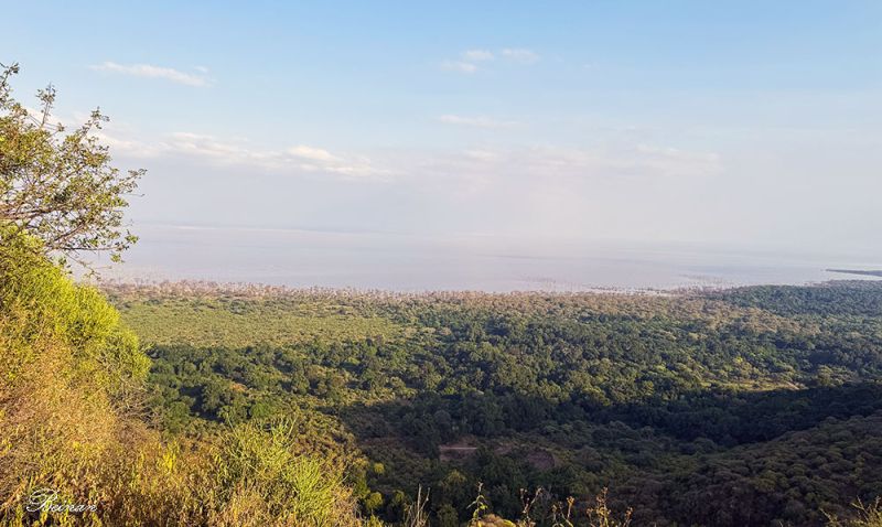 路过曼雅拉湖国家公园(Lake Manyara National Park)。这是我们行程上原定游猎的公园。导游说,现在正是湖水上涨的季节,湖面漫过湿地和草地,大象、斑马、角马都暂时搬离湖区去找干地吃草。湖边几乎空无一物,看不到什么动物。所以他才带我们改道去了塔兰吉雷国家公园。