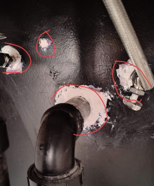 隐藏在洗脸柜里的漏洞和裂缝也都堵住了: