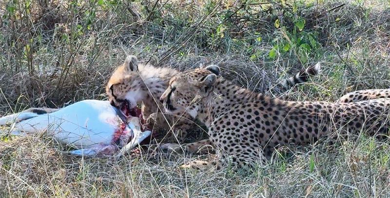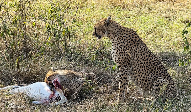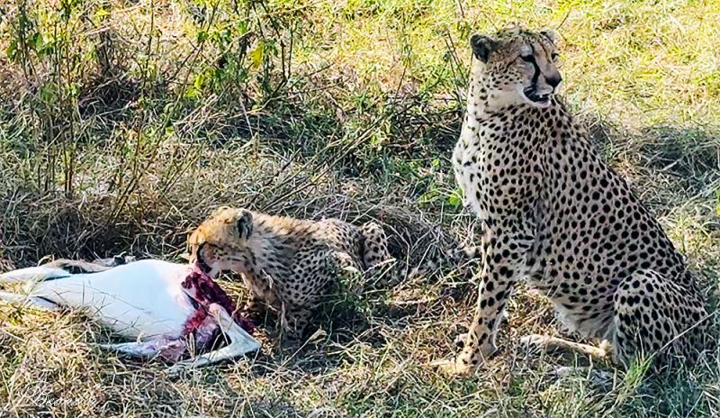 最令我们兴奋的,是看到了猎豹(Cheetah),并且是一对母子。小豹在大口啃食它们的猎物----看起来像一只前面说过的汤姆森瞪羚----画面是不是有些残忍?