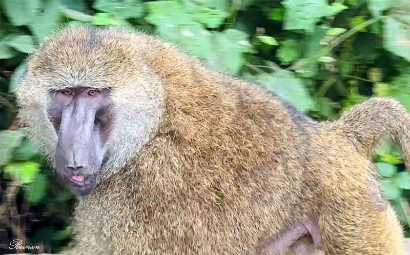 停车场上,一只橄榄狒狒(Olive baboon)大摇大摆地从我脚边走过。这是是东非最常见的大型猴类之一。那双小眼睛傲慢地盯着我,好像在警告我,它才是这里的主人。