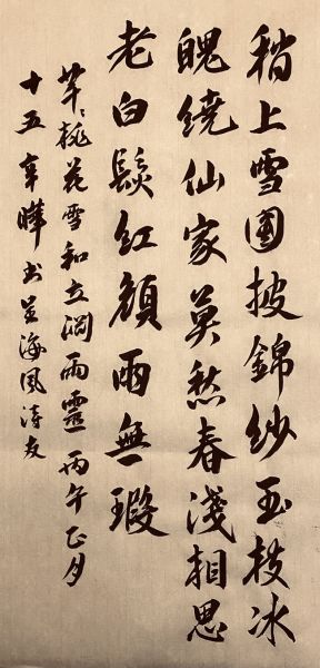 谢芊芊斑竹赐诗:“立渊雨灵,新名字 :-))” 桃花雪 和立渊雨灵 文/芊芊 稍上雪国披锦纱,玉枝冰魄绕仙家。 莫愁春浅相思老,白发红颜两无瑕。 海渊兄:“@海草.芊芊 晚課習字,看見班主詩,塗鴉了(渊兄书法加在文中了)” |