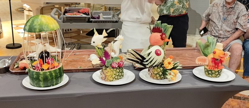 上午有个水果蔬菜雕刻秀,我们去观赏: