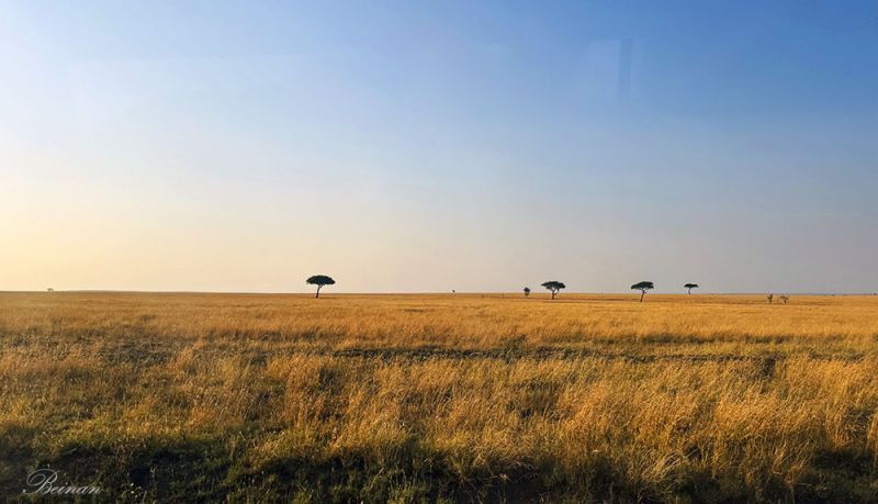 天色渐亮,展现在我们眼前的是一望无际的金色草原,一种天连着地的开阔感。塞伦盖蒂位于坦桑尼亚北部,与肯尼亚(Kenya)的马赛马拉国家保护区(Maasai Mara National Reserve)相连,是非洲最著名的野生动物保护区之一,也是东非草原最典型的象征。