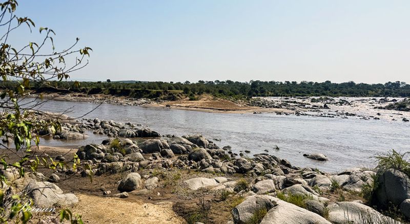 跟随着角马的脚步,我们来到马拉河边。这里的河岸比较平坦,河水也不宽。在枯水期,马拉河最窄的地方也就是大约20米。雨季时,河宽可达约50-80米。