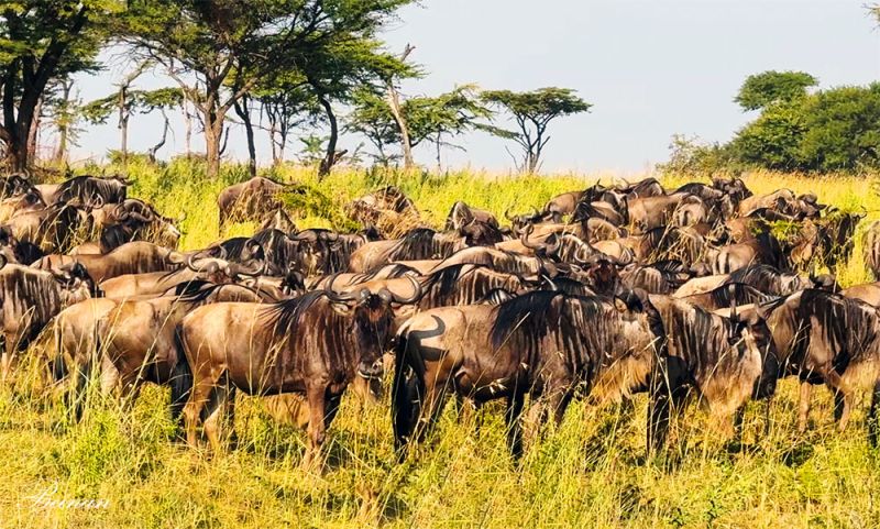 常听到从塞伦盖蒂回来的人说,我们一天看到了n次大迁徙。