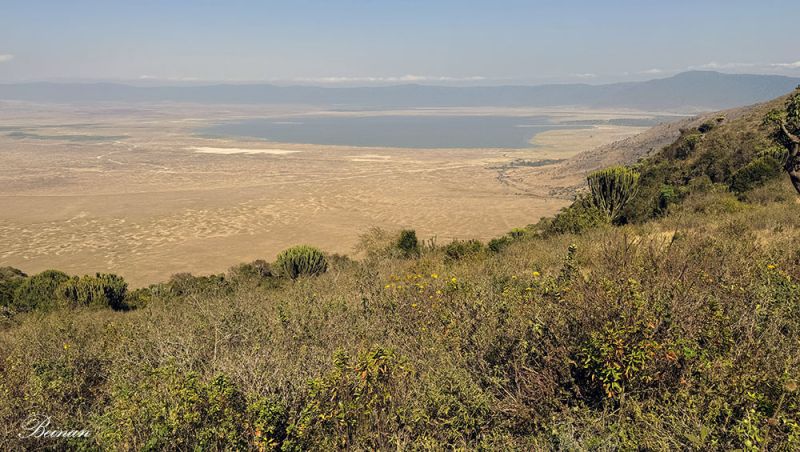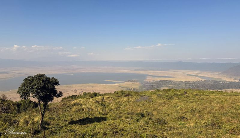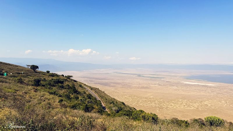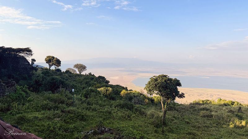 再次看到恩戈罗恩戈罗火山口,是在火山口边缘的高地上。这里海拔大约 2300米,正好在火山口的“边缘墙”上。