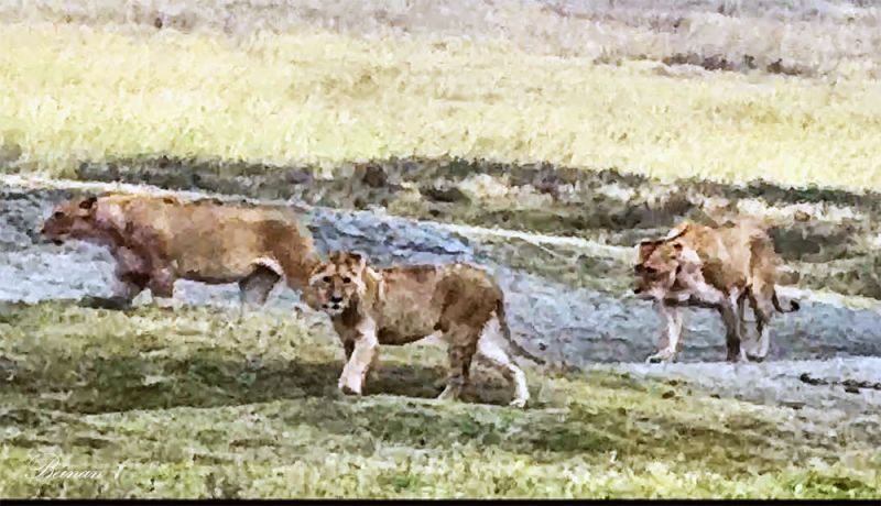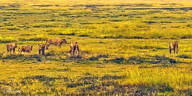 我们常看到十几头狮子的狮群。大大小小、老老少少欢快地一起行动。这是我们在别的地方都没有看到过的。