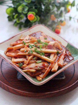 前几天去菜市场买了几只杏鲍菇,回家想尝试做个新鲜花样,原来我都是配上时令蔬菜炒肉,这天的菜没有什么可以和它相配的,而且我这天还不想用它炒肉,要吃素的。于是上网搜“杏鲍菇的做法”,搜出来菜式无数条,快速浏览,一条“鱼香杏鲍菇”映入我的眼帘。点进去,又是快速浏览,不复杂,看上去不错,应该很好吃,于是如法炮制。