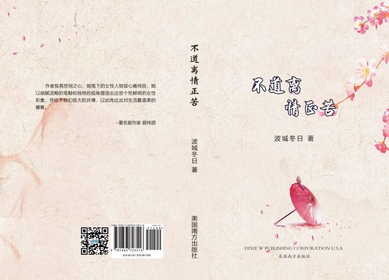 阿尘(波城冬日)相识于文学城网站,她的创作是全方位的,散文、小说、纪实,无一不涉及。这部小说集包含一部短篇和一部长篇,短篇小说《闻君有两意》是第一次看,长篇《不道离情正苦》是在网上就曾阅读过,记得那时在连载,每天都会上网看看是否更新,最终结局圆满,一颗心便放下来。