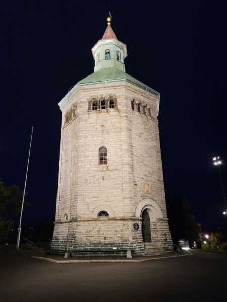 饭后,天色已黑,我们先去了在一个小山坡上的瓦尔伯格塔(Valberg Tower)。它建于1853年,曾作瞭望台,其一个重要作用是观察发现火情。这里过去应该是城防要地,几门古时的大炮还留在这里。现在塔内是一个守塔人博物馆。而后我们来到一个漂亮的花街Fargegaten Street,沿街两侧都是餐馆,一看便知这里是吃饭会友,消磨时间的好地方。在城市中心,我们穿街过巷,不时看到墙上的壁画,有些水平很高,是出自专业艺术家的手笔。可惜斯塔万格天主教堂不开,在维修之中,其实它就在我们酒店边上。