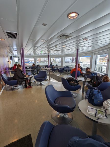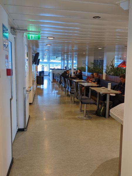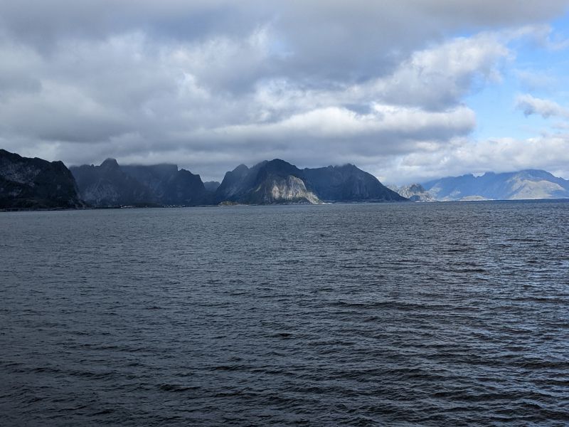 早起去机场赶飞机的一个原因是安检要花费许多时间,来时已经领教过了,我曾经在过安检时问工作人员为什么不多加人手以加快速度,回答是找不到人,没人喜欢干这样的工作。我们先去还车,标识很小特别难找,后来在一位路过的女士的提示下才找到,手续其实挺简单,只是当时不知道是否将车放在那里就行了,半天才看到一个工作人员,被告之车停在那里,钥匙留在车里就行了,当然要注意拍照留下车的状况记录以防万一。飞行大概一个多小时到达了博德。我们在机场租了一辆同样的SUV,开车五分钟便到了渡轮码头,排队上渡轮的车辆很多,开始我还有些担心。因为怕飞机晚点没有事先买票,所以不知道能否赶上早上去Moskenes的渡轮,后来工作人员告知上船没有问题,我才松了一口气,否则就要在这里等上几个小时乘下午的班次,我们几乎是最后开车上渡轮的。自驾旅游中的计划、安排、订票、交通等等都是不少的工作量。