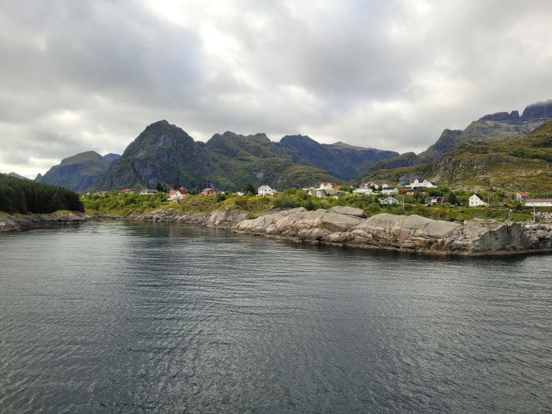 渡轮在2点多一点抵达莫斯克內斯港口,我们下船后直接驶向A0小村,这是串连罗弗敦诸岛的E10号公路之最西南端。小村过去只是一个纯粹的渔村,随着旅游者不断增加,这里也开始变得商业化。附近有一个不高的小山,爬到山顶可以俯瞰村子及周围海域的景观,非常值得攀登。离开A0小村,我们向雷纳前进。