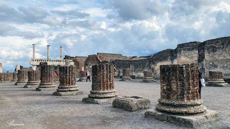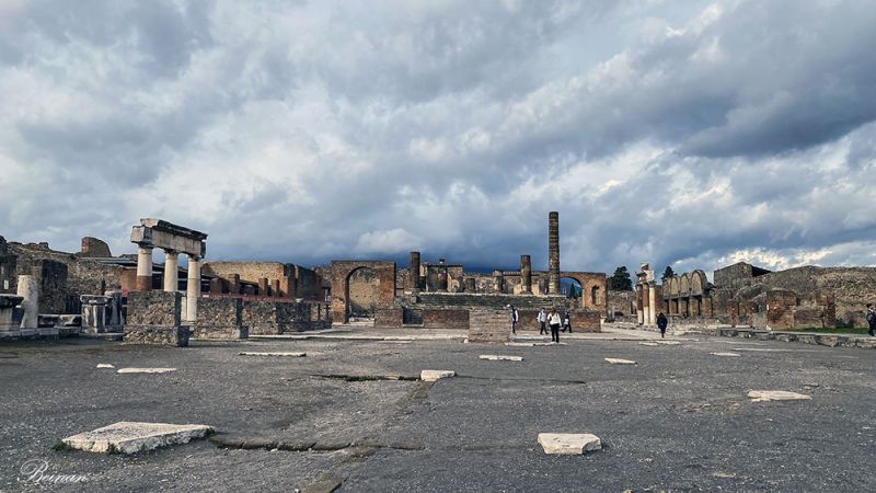 站在庞贝最大的中心广场中间,闭上眼睛,感受近两千年前这里繁荣热闹的气氛。