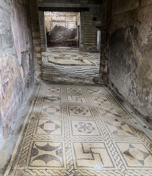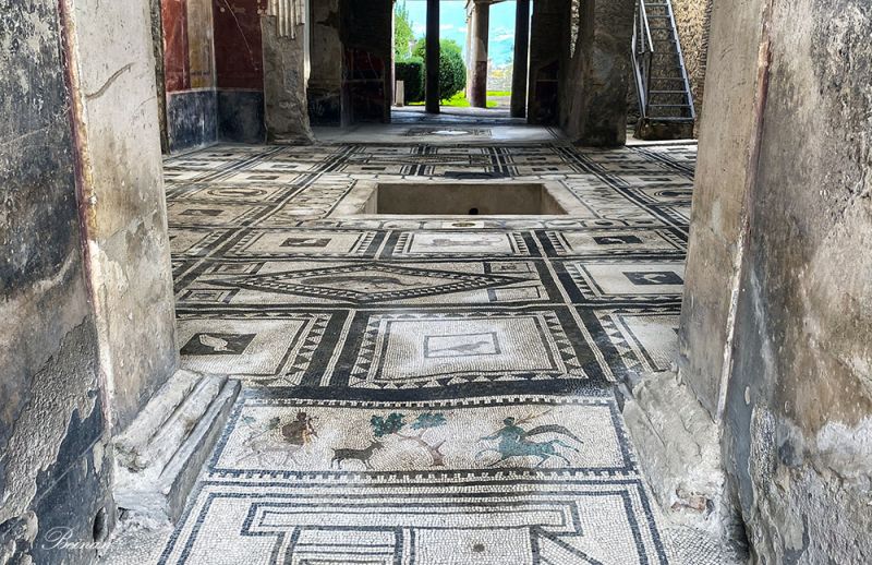 博物馆里有一个需要另付费的展览,展示的都是从赫库兰尼姆和庞贝挖出的马赛克地面。游客可以穿着套鞋在地面上行走,感受两千年前的奢华。