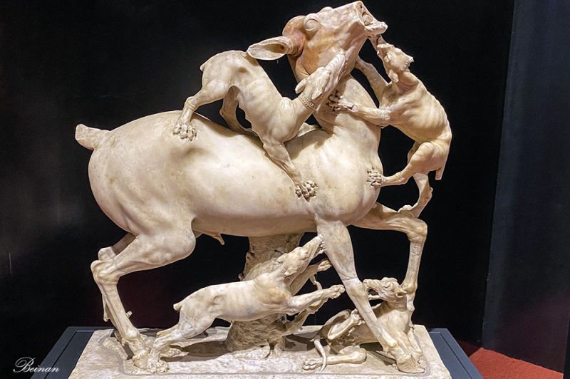 古物馆里展示一些从火山灰中挖掘出来的雕塑。这座猎狗捕鹿的雕塑刻画的活灵活现,令人叹为观止。这可是2千年前的人创作出来的呀!