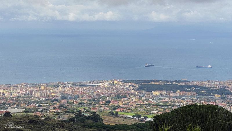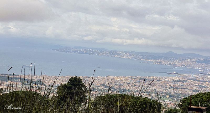 在山上可以俯瞰那不勒斯城区和地中海(Mediterranean Sea)海湾 --- 第勒尼安海(Tyrrhenian Sea)。