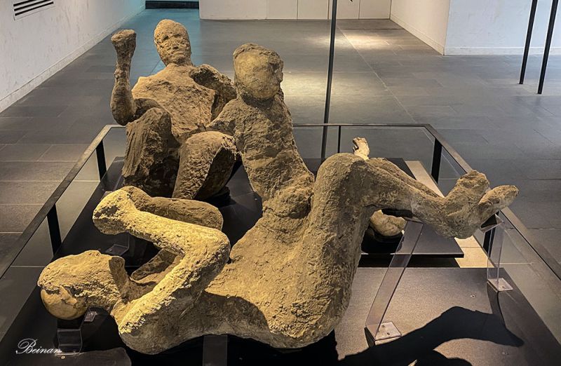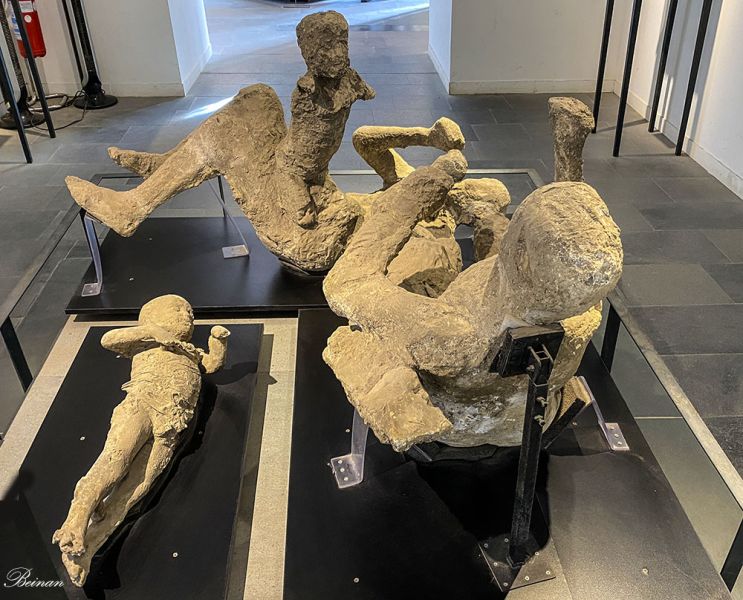 昔日繁荣的庞贝古城,现在是庞贝考古公园(Pompeii Archaeological Park)。我们先来到庞贝古物馆(Pompeii Antiquarium)。最先看到的是呈现出各种姿势的庞贝人的遗骸。