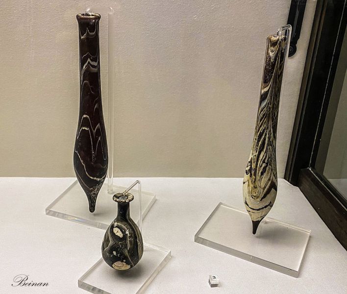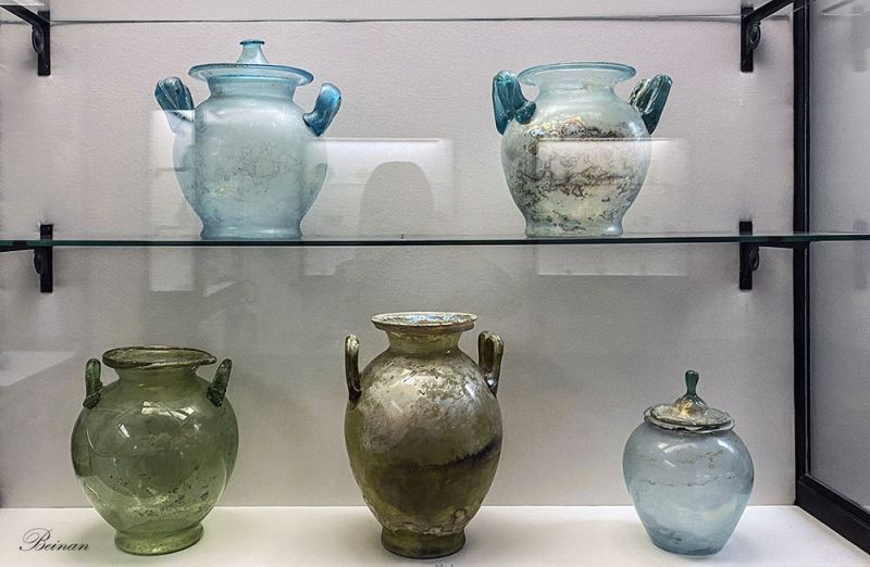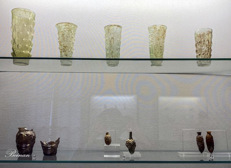 这些玻璃制品看起来像普通人家的日常用品。可见当时在这些罗马古城,玻璃制品已经十分普及。