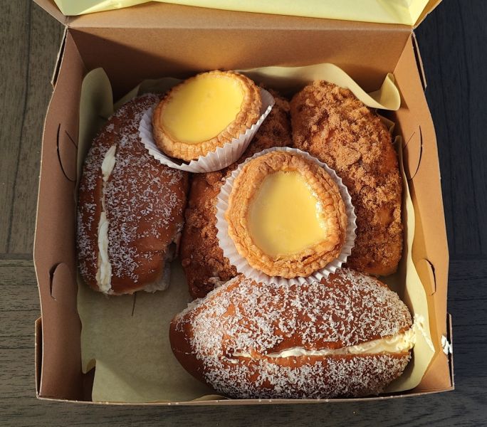 接着去拿破仑饼屋看看,果然价廉物美(相对论)。当时人不多,只是店内排队。我们想轻装上阵去金牡丹美食,餐后再来买。