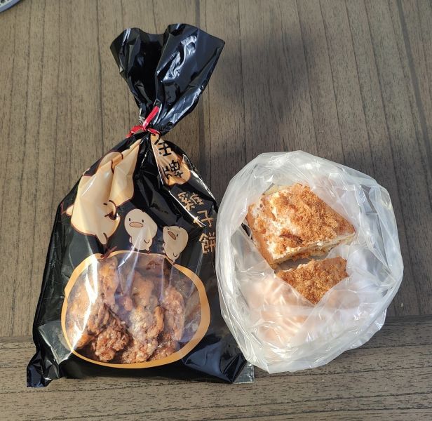 还买了一袋鸡仔饼、2只肉松蛋卷: