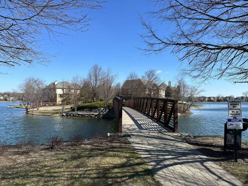 寒流退去云尽消 万里蓝天映柳绦 长亭侧畔格外绿 春风浩荡度小桥