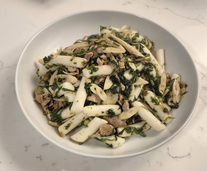 荠菜笋片肉丝炒年糕(家乡的味道):