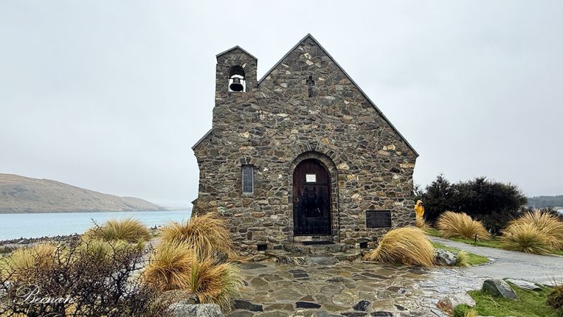 湖边静静矗立着好牧羊人教堂(Church of the Good Shepherd)。教堂建于1935年,小小的石砌建筑面对湖水,就像守护者,温柔而庄重,象征牧民与自然的和谐。