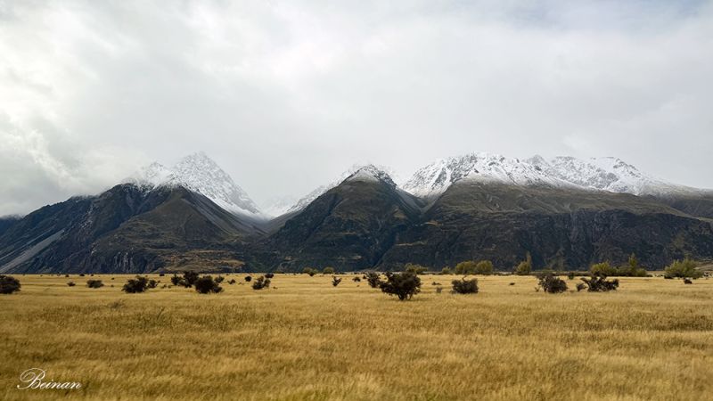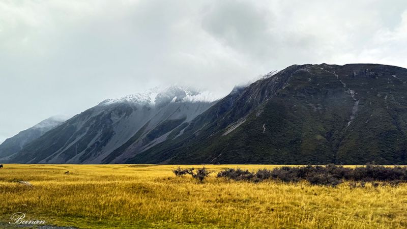 再次看见白雪覆盖的库克山峰和金色的牧场。美景百看不厌。