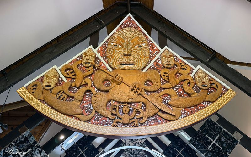 正厅的天棚上挂着毛利人的木雕,不知寓意是否是保护他们的神山。