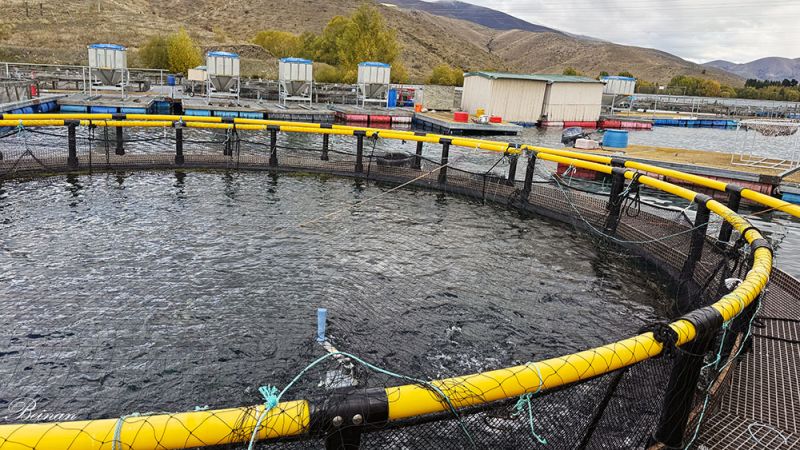 来到高地鲑鱼(High Country Salmon),这是这条旅游路线上一个受欢迎的打卡点。这里主要养殖大西洋鲑鱼,也叫三文鱼(Atlantic salmon),因为高山冰川融水清澈、寒冷,水质极佳,非常适合养殖。