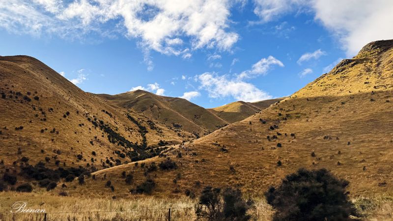 离开特卡波湖,继续前行。车窗外是连绵起伏的山丘,广阔的金黄或青绿的牧场。