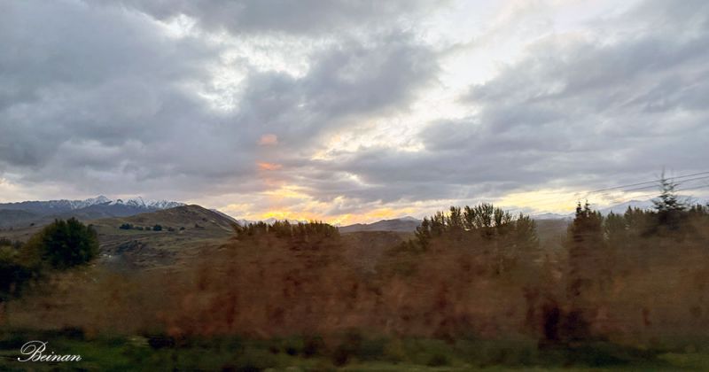 听着Shrek的神奇而有趣儿的故事,看着车窗外连绵不断的美景,在晚霞的欢迎下,我们到达了目的地皇后镇。