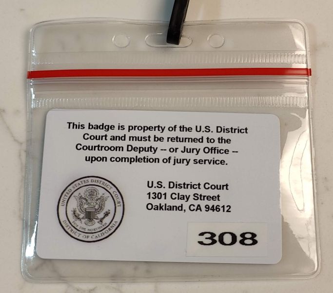 但从正面看,这不正好让我再一次体验陪审,而且是联邦法院,大案子,好事啊。