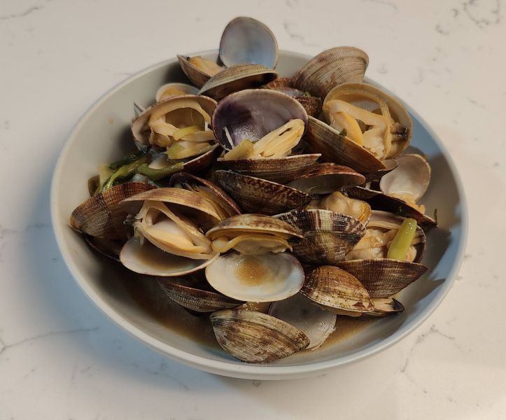 晚餐前几小时把蛤蜊拿出来,清水中养一养,好好吐故纳新。