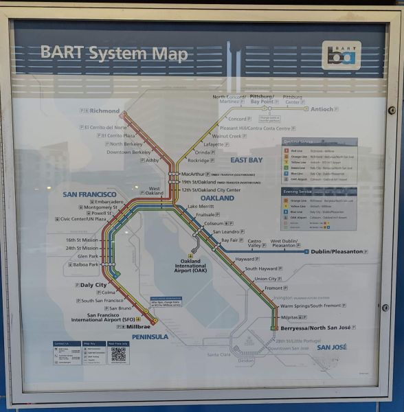又:“我们东湾是黄线。到了奥克兰,BART有好几条(不同颜色的)线路。回来要坐黄线,往安城方向。别再往旧金山去。”