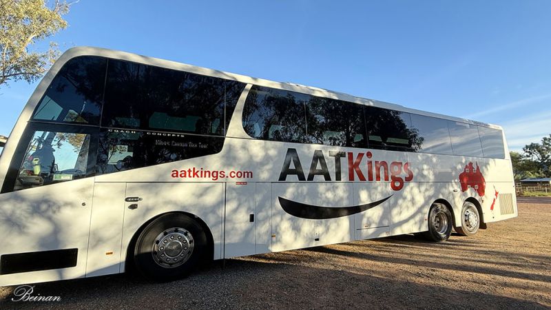 后来发现,在乌鲁鲁,机场的班车和一日游,大都是这样的大巴。估计旺季时,游客会很多。不过在这种地方,游客再多也不会显得拥挤。路上也很清静,根本看不到别的车辆。
