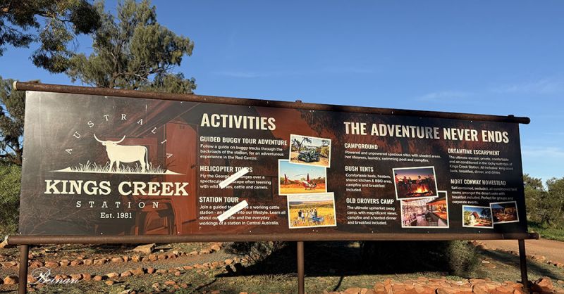 这里是通往瓦塔卡国家公园途中一个著名的休息点和观光牧场。这是一片私人领地,牧场面积超过1,800平方公里,原本以养骆驼和牛为主,如今同时兼营旅游业。牧场的名称来自于附近的国王溪(Kings Creek)。