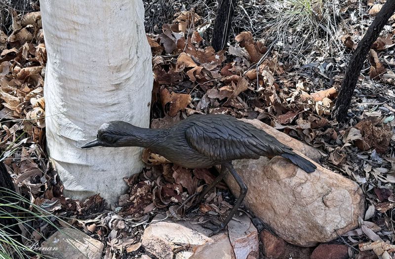 忽然,感觉脚边有什么东西,定睛一看,嘿!地上有一只鸟!它怎么不飞?再仔细看,是个雕塑。导游说,你如果仔细看,能看到很多这样的雕塑。都是当地艺术家的手笔。这些鸟都是当地常见的鸟类。