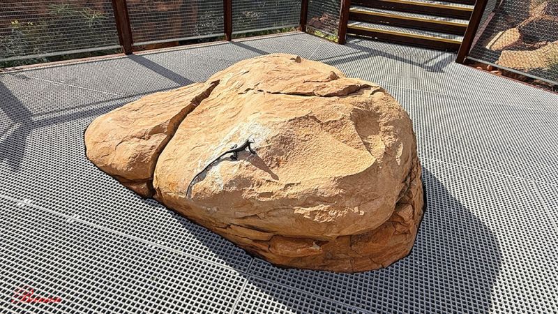 导游告诉我们,建造这个观景台也很艰苦。那时峡谷底没有路,车子进不来。所有建筑材料都是工人们背过来到。有些挡路的岩石也很麻烦,这不,特意在观景台面上弄了个大洞,让这块岩石露出来。