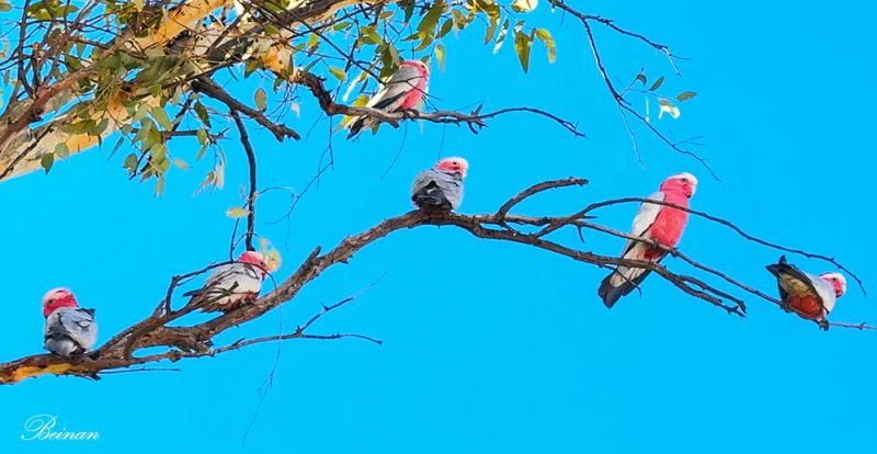 国王峡谷一日游还有一个收获,就是看到了成群的粉红凤头鹦鹉(Galah cockatoo),也叫玫瑰鹦鹉。我们第一次看到这种鸟,是在菲利普岛的考拉保护中心(Koala Conservation Reserve)。