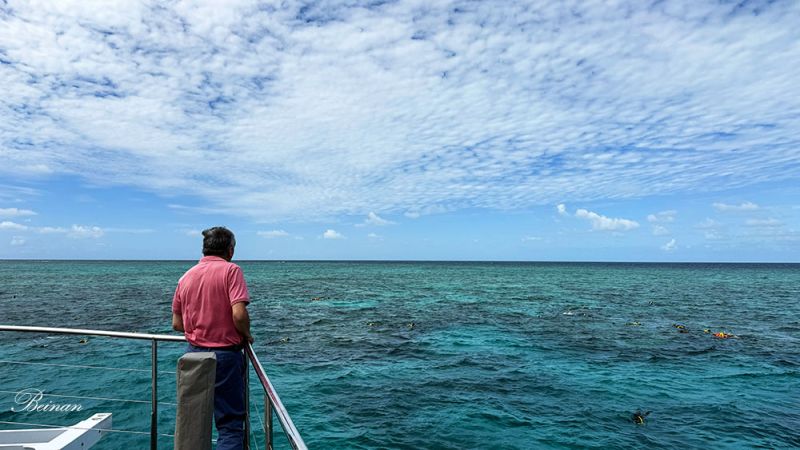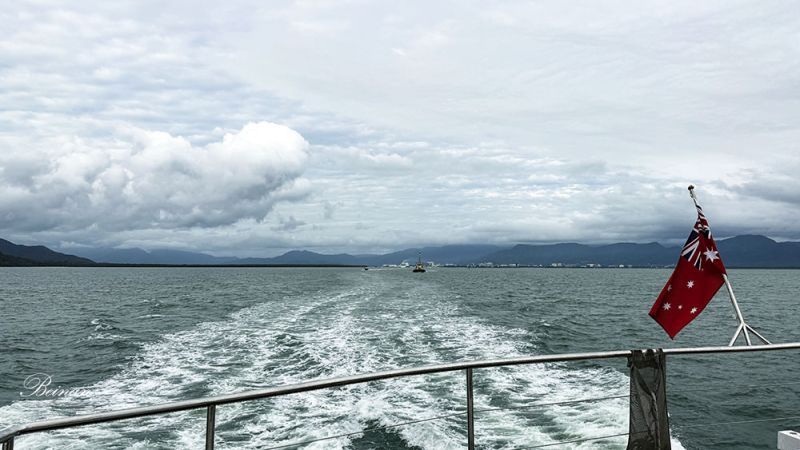 果然,刚离开凯恩斯港不久,海面就开始起伏。双体船虽然比普通船稳,但浪一大,仍能感到船体在上下摇晃。虽然吃了晕船药,但是吃晚了,还是有些晕船。