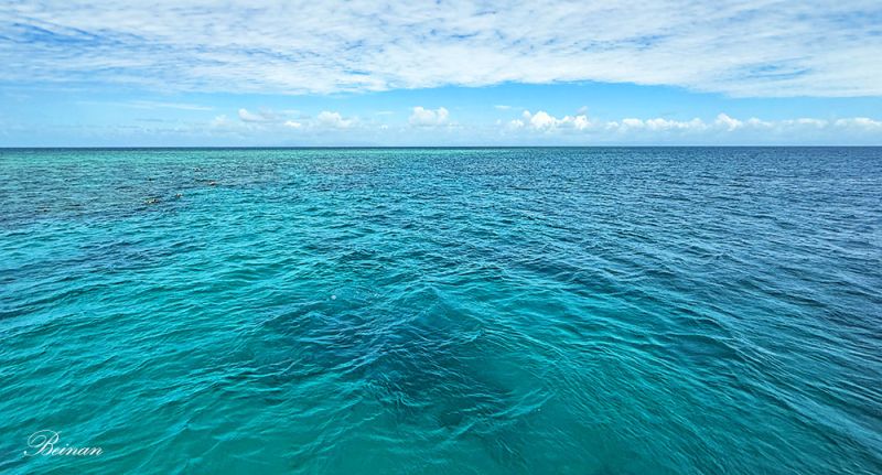 海水的颜色变化极其丰富,几乎像一幅会动的画。这些不同的色调并不是因为海水本身有颜色,而是由光线、海水深度、海底地形、珊瑚和沙质等多种因素共同造成的,是光与深度、生命与地形的共同创作。