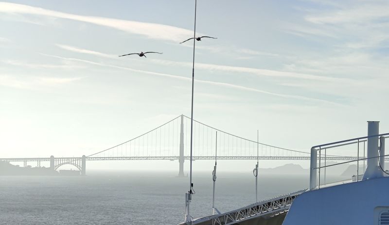 我们的邻居中东老太太两口子2年前也坐过这趟16晚夏威夷游轮游。她关照我们几次:“游轮离开旧金山,经过金门大桥,一定要去看。这视角寻常看不到。。。”