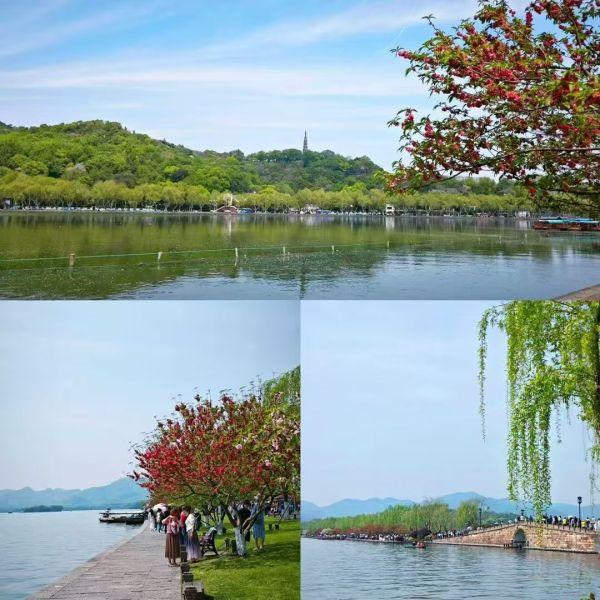 跋:杭州文友缪静文小妹今日白堤赏春九宫图,绝句《西湖春之景》,教我如何不思乡啊。即兴和一首,次韵缪静文。 2025年4月8日