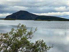 惠尔山火山步道(Hverfjall Volcano Trail):湖边有平坦的步道,到火山步道需要走一段石子路,停车场不小。惠尔山火山口高396米(1300英尺),是一座火山灰爆发形成的火山口。它位于米湖东岸附近。形似一个巨大的黑色火山灰锥,沿着陡峭的山坡攀爬,环绕火山口边缘可以俯瞰火山口,并远眺周围令人叹为观止的壮丽景色。