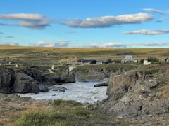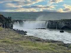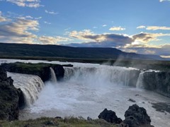 旅馆里有餐厅,里面蝇虫飞舞,不过方便,定了八点回来吃晚餐。一路疾走争取在日落前到瀑布前,可以从高,低和对面三处观瀑布,若谷没来的及去上面的观景台,直接去瀑布下面,瀑布以雷霆万钧之势跃入斯乔尔万达河。瀑布底下游人众多但井然有序摆拍。回头折回来过桥再去对面看瀑布,依然气势非凡。
